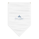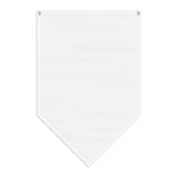 Equip your audience's home with a festive touch thanks to this custom pennant banner. Each pennant is made with 15oz block-out, scrim vinyl material for decoration that looks crisp for as long as possible. Your prints are made in full color with vivid details and each pennant has a slick white matte finish with two brass grommets on the top corners. 2x Hanging ropes included