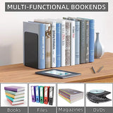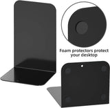 The bookend is made of metal material, which is strong enough to hold many books, and has a rounded corner design, which will not scratch you when picking up books, and will not scratch your furniture.