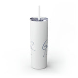 The Maars personalized skinny tumblers keep your drinks hot for 12h and cold for 24h, making them the perfect sipping companion all year round. With 20oz capacity, these tumblers come in a matte or glossy finish, and feature a tapered shape with a slim design for effortless carriage. The plastic press-on lid with color-matching straw makes for great practicality on the go, while all components are BPA-free and non-toxic; aka perfect for the whole family.
